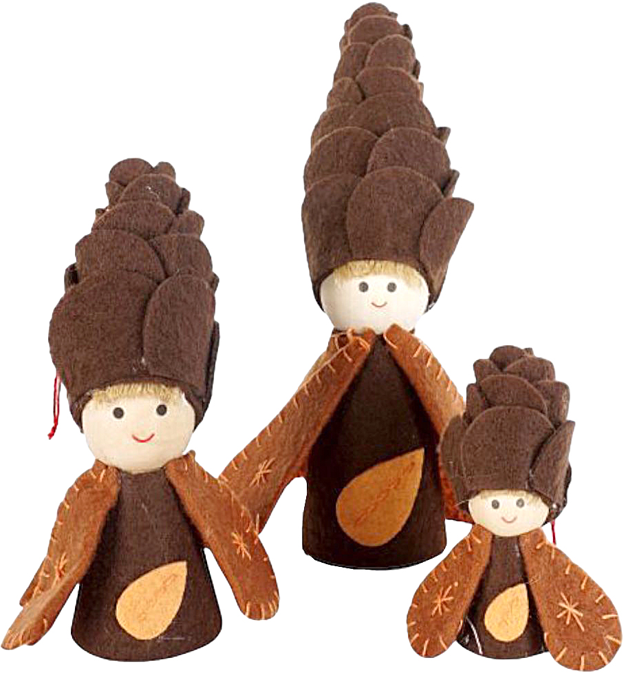 Diese niedliche Wichtelfamilie hat die Form von Tannenzapfen und findet leicht Platz auf Regalen, Blumenbänken, Tischen. Die Körper der drei verschieden großen Figuren sind aus Holz, ihre herbstlichen Kleidchen und Spitzhüte aus hochwertigem Filz. Auch ideal als Geschenkidee oder Mitbringsel geeignet.