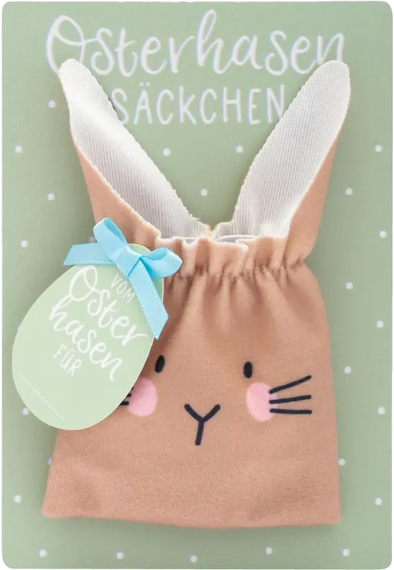 Dieses Osterhasen-Säckchen mit Geschenkanhänger ist ein echter Hingucker! Es ist zudem mega flauschig und hat ein lustiges braunes Hasengesicht auf der Vorderseite. Das Säckchen ist groß genug, um Geld oder andere kleine Überraschungen hineinzustecken. Mit diesem Osterhasen-Säckchen bereitet man garantiert Freude!
